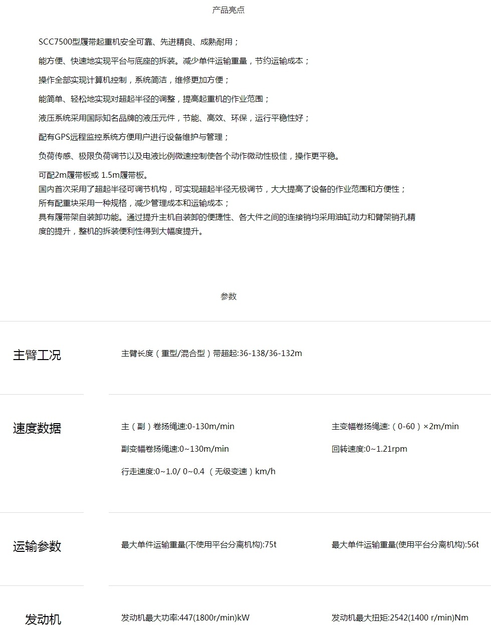性能参数下载地址:SCC7500履带式起重机性能表下载地址